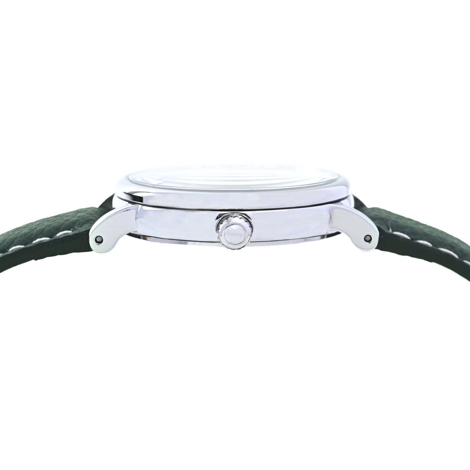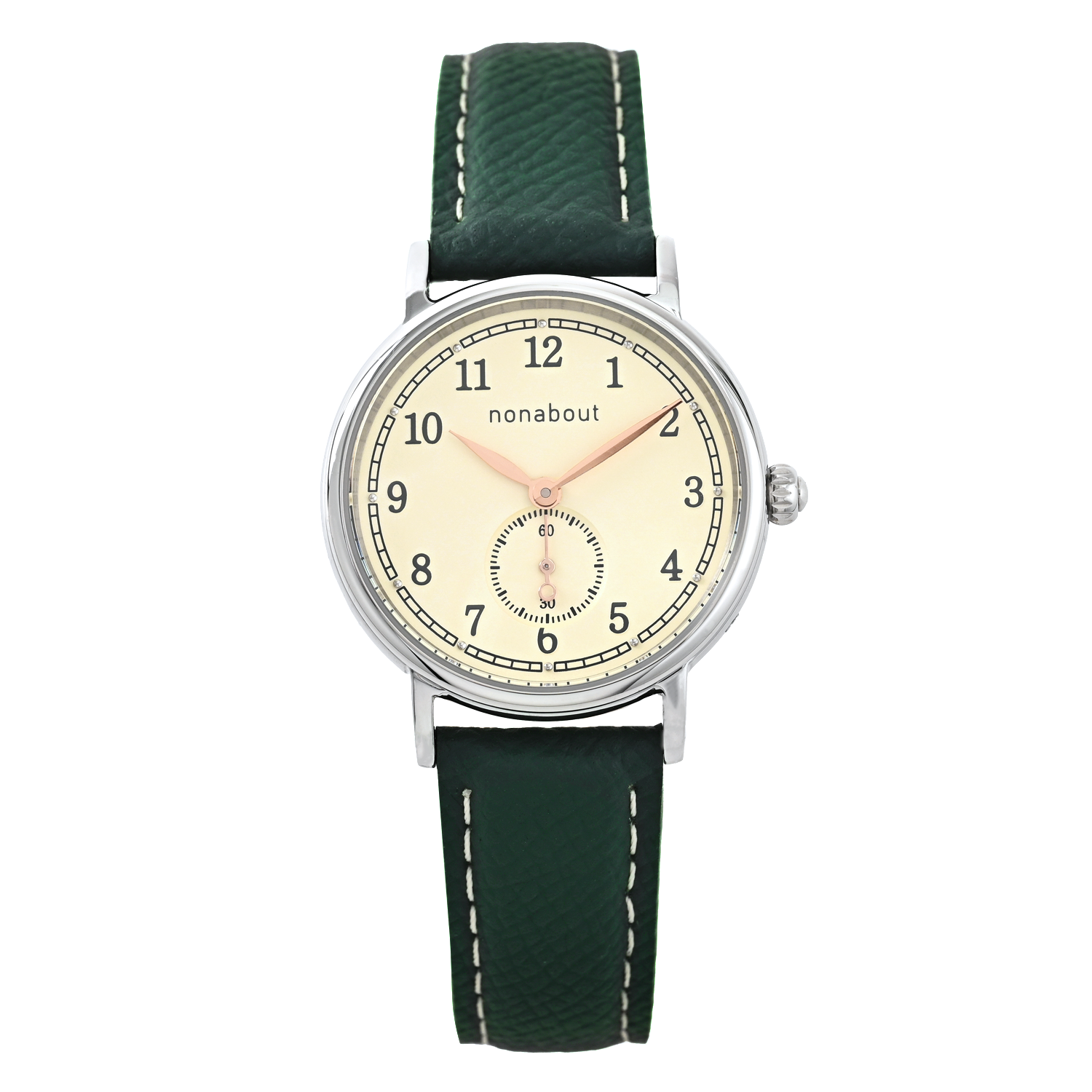 手元にそっと寄り添う控えめで繊細な32mmサイズ。 柔らかく丸みを帯びたケースとカラースモールセコンドが印象的なデザインは、小さな中にも確かな個性を宿します。 上質なレザーベルトは使うほどに手になじみ、時とともに深まる愛着を育てます。 毎日のスタイルに、さりげない彩りと上品な存在感を添える一本です。