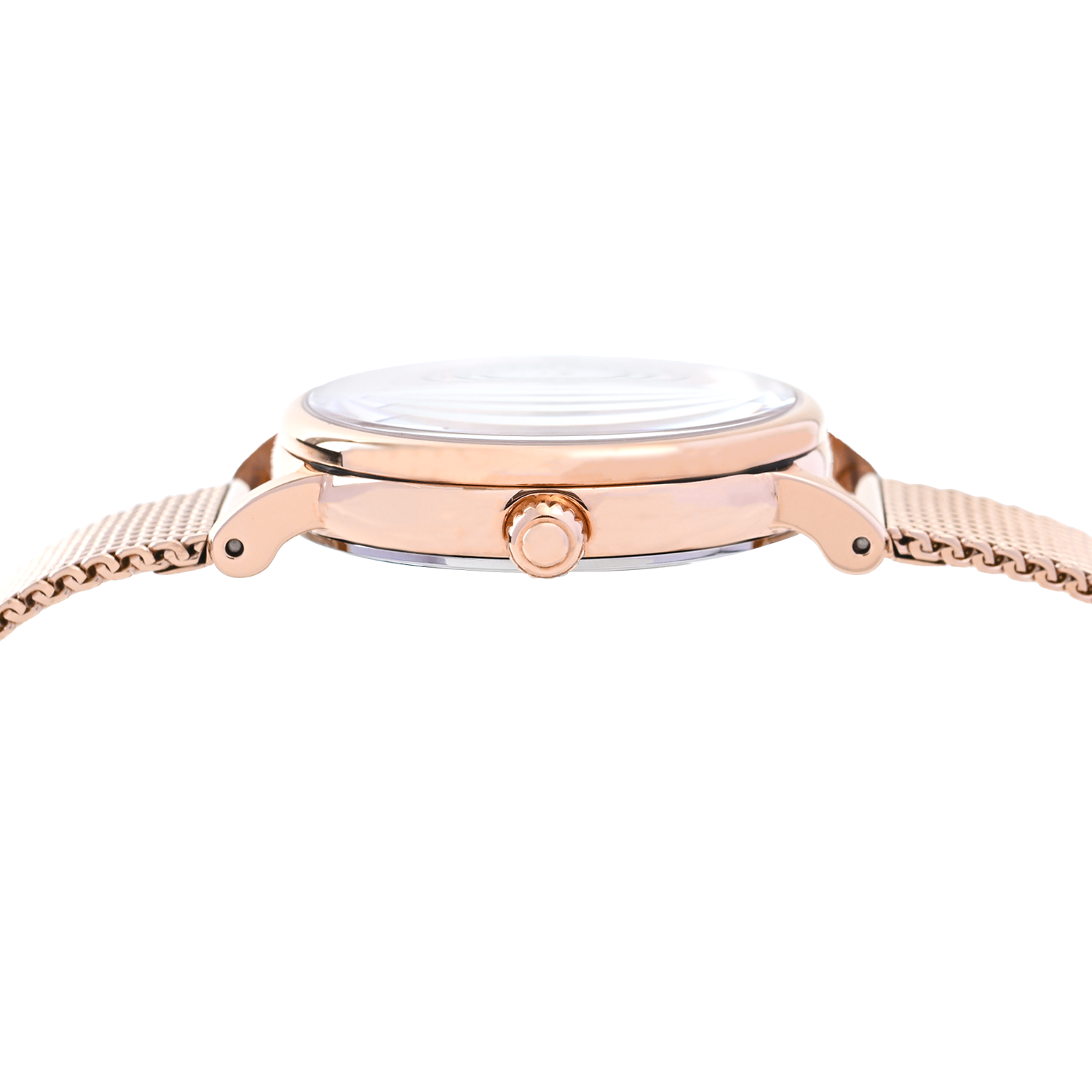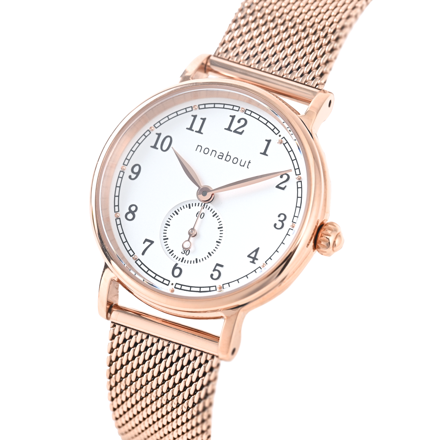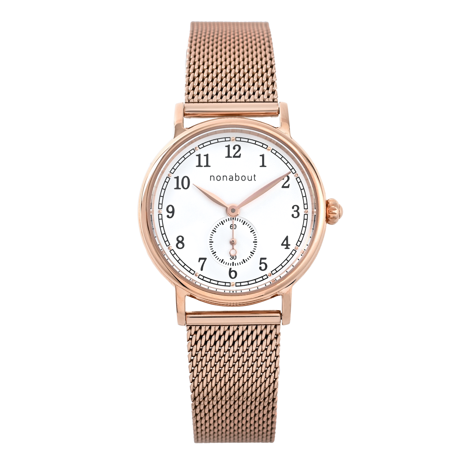 手元にそっと寄り添う控えめで繊細な32mmサイズ。 柔らかく丸みを帯びたケースとカラースモールセコンドが印象的なデザインは、小さな中にも確かな個性を宿します。 繊細なきらめきをまとったメッシュベルトは、肌にさらりと心地よく、軽やかで洗練された印象に。 毎日のスタイルに、さりげない彩りと上品な存在感を添える一本です。