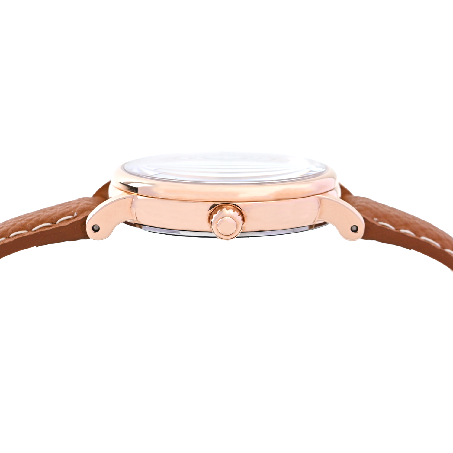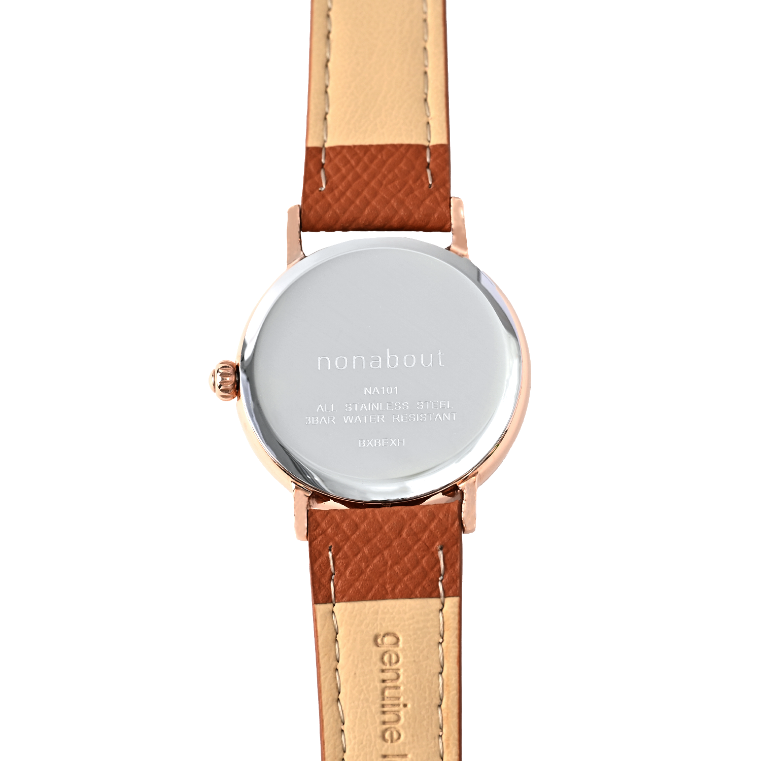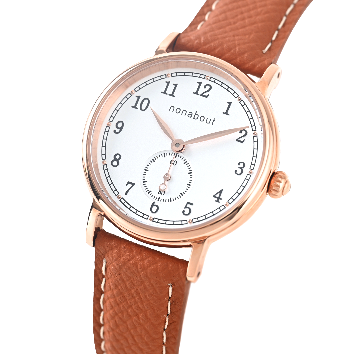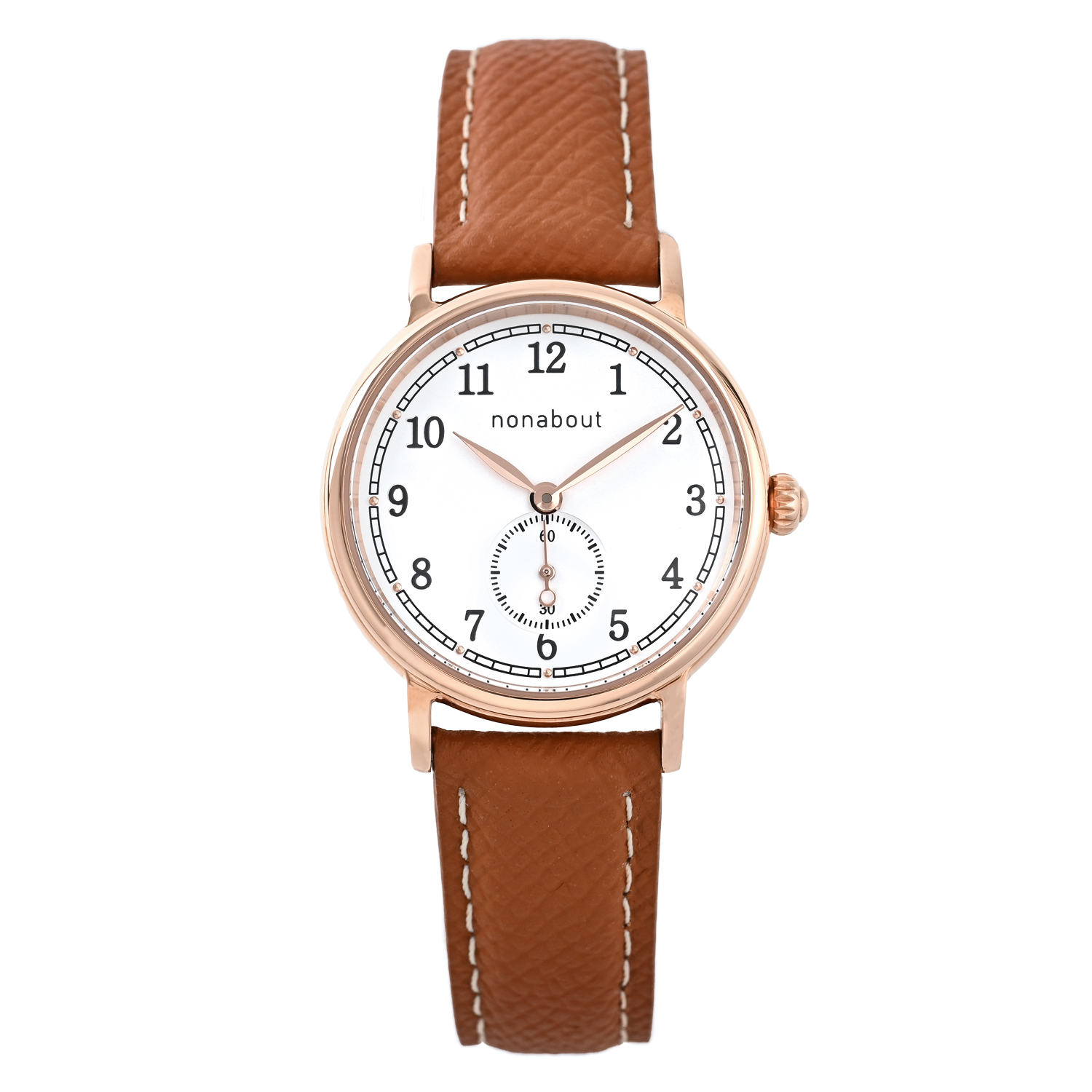 手元にそっと寄り添う控えめで繊細な32mmサイズ。 柔らかく丸みを帯びたケースとカラースモールセコンドが印象的なデザインは、小さな中にも確かな個性を宿します。 上質なレザーベルトは使うほどに手になじみ、時とともに深まる愛着を育てます。 毎日のスタイルに、さりげない彩りと上品な存在感を添える一本です。